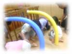 雨の日や水遊びが早く終わった日などにホールを設定して遊んだ日もありました。ホール遊びの様子もお伝えします。