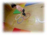 お店屋さんごっこかな?タイヤにバスマットをのせると去年も流行っていたトランポリン。段々跳ねるのも上手になってきました。大人が地面にマーカーで丸を描いていくと、その丸に沿ってジャンプする姿も出てきました。