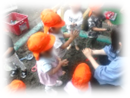 世話遊びでは「あかちゃんはエーンって泣いてるのね」と設定の確認から始まります。「エーン」と泣く赤ちゃん役の子が「ミルクがいいよーって泣いてるのね」と注釈を入れ、改めて「エーン」と泣きだすと、ママ役の子(時々ママは2人、3人になったりします。)が「ハイハイ、ミルクよ」とお世話をしています。設定の確認や、途中で入る注釈を聞いていると、子どもたち同士で“イメージを共有”してままごとを展開していこうとする様子がよくわかります。