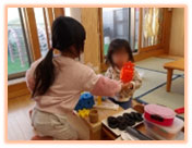ごっこ遊びでも押し入れの前の隙間をエレベーターに見立てて「上にいきま~す」「下にいきま~す」等、お母さんごっこから、お買い物ごっこ、学校ごっこ、病院ごっこへとどんどん遊びが膨らんで展開しています♪