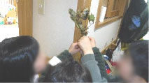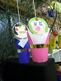 しなだれた枝に葉を付けた釣り竿を持つ釣り人役と魚役に分かれた、魚釣りも人気。