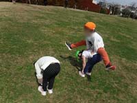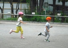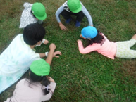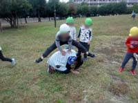散歩では、近くの大学の広場を借りて、転げまわったり、かけっこ、綱引きなど、体を存分に動かして遊んでいます。