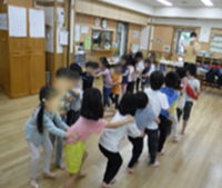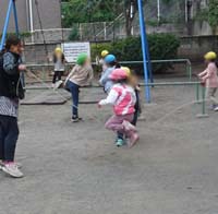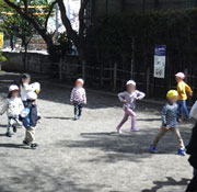 今年度から、3~5歳児クラスを2つのグループにして、異年齢保育を中心に生活を始めました。 グループ名は、「ほし」と「つき」。別々の公園に散歩に行く日もあり、合同で活動する日もあります。