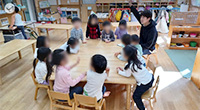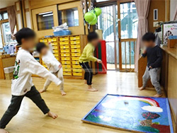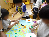 以前までは、毎日の日課(散歩先の公園等)を保母が中心となって決めていましたが、最近は、帰りの会の時間に行きたいところ、やりたいことの意見を出し合ってみんなで一週間分の日課を組み立てています。