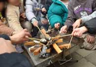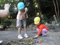 まつぼっくりやどんぐりを集めて、バーベキューを楽しむ子もいます。