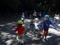 天気のいい日には毎日散歩へ出かけては、全員で氷オニやドロケイなど、ルールのあるゲームをしています。