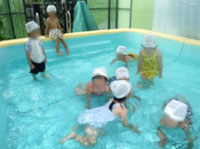 そして三日目。いつものよう保母の背中に乗っていると、 突然自分から保母の身体を離れ、両手を水底について、なんと ! ワニ泳ぎをしだしたのでした !最初はドキドキした表情で、でも 、余裕が出てくると笑顔で「できたよ!!」と嬉しそうに、気持ち 良さそうに泳いでいました!「やってみたい!」というRくんの 気持ちが自分で一歩を踏み出して、乗り越えた瞬間でした。