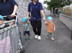 乗りたい子は散歩車、歩きたい子は大人や友だちと手つなぎをしてお散歩に出発!「○○いたね!」「○○あったよ!」と色んな動物や植物の発見や、歌をうたって楽しみながら散歩先まで歩いています♪