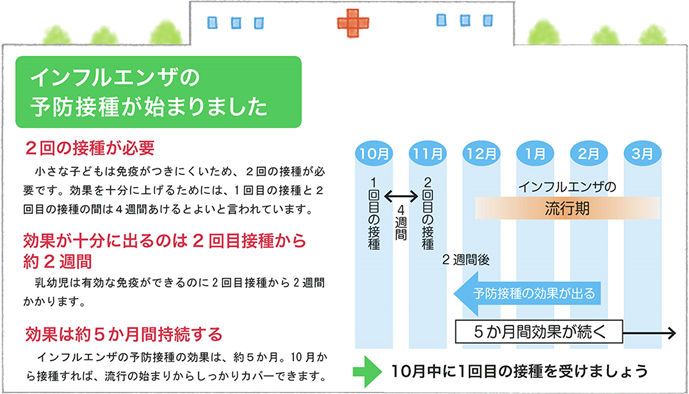 新しい乳児医療証の提出がまだの方は、コピーをして事務所前銀ポストにお入れください!インフルエンザの予防接種が始まりました