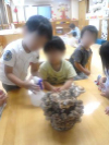 すぐに 調理と連携して子どもたちにしめじほぐしを提供出来たのはとても良かった。 キノコについて関心が深まり 、 その後の 製作にも楽しんで 取り組めていた。